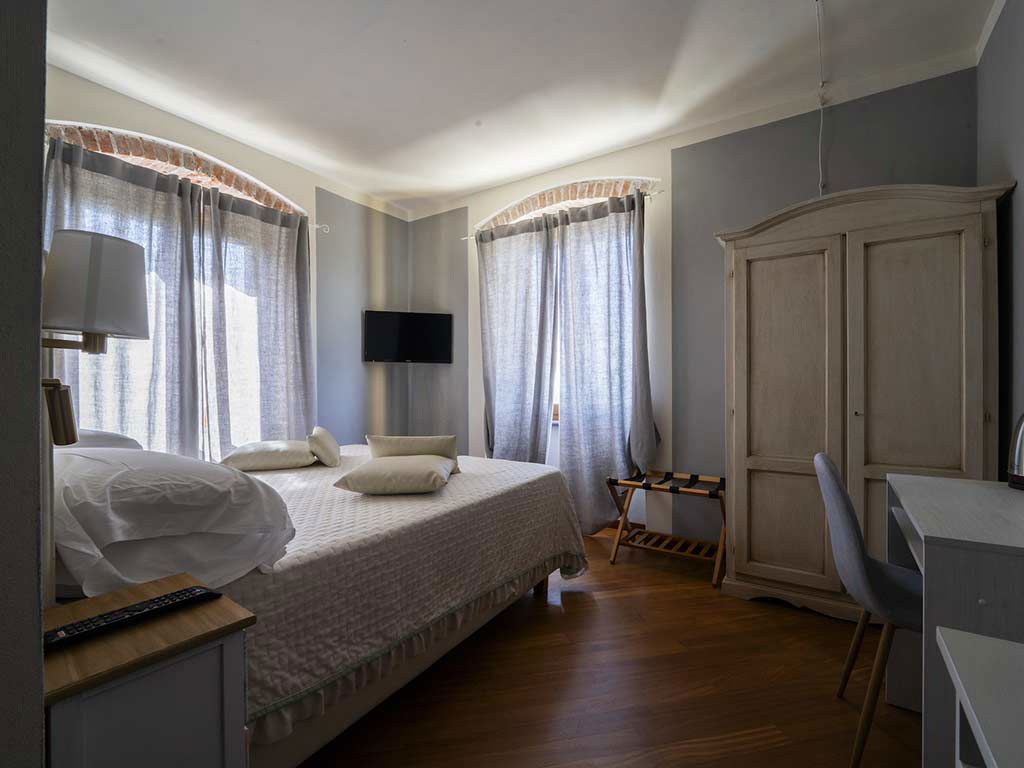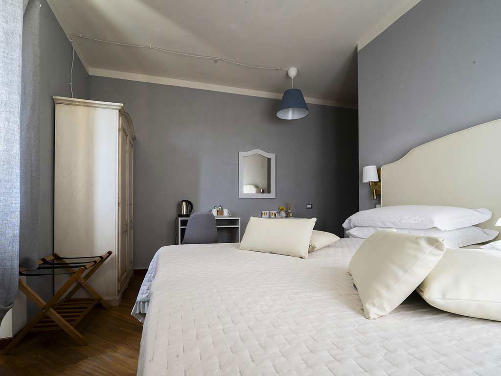 The Standard Ubaldini room at Locanda de Banchieri is an elegant sanctuary of sophistication offering a splendid view of the Gulf, perfect for couples or solo travelers seeking an escape from daily life and city bustle.